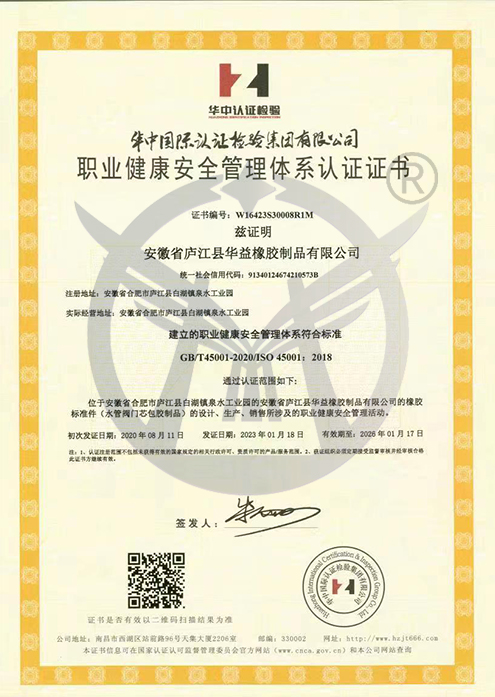 Occupational Health and Safety Management System Certification Certificate