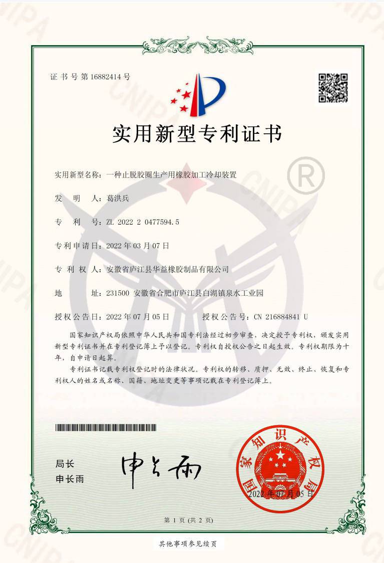 Utility model patent: a rubber processing and cooling device for production of degumming rings