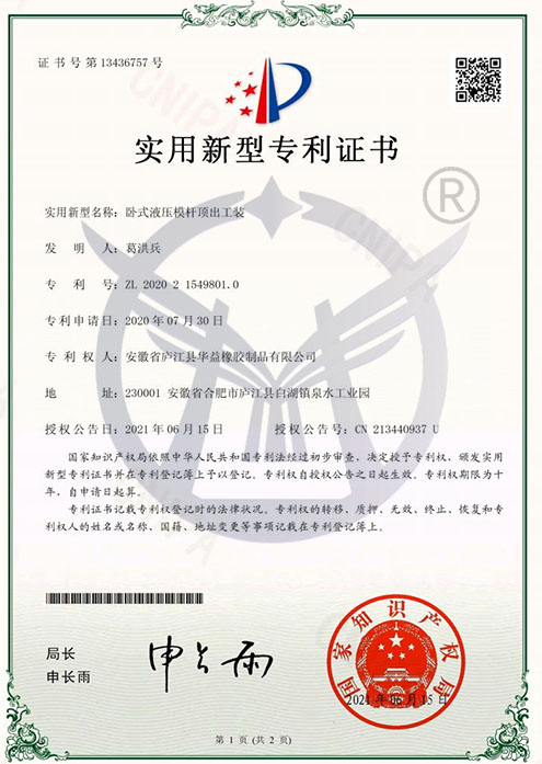Utility model patent: horizontal hydraulic cross rod ejection workpiece